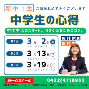 ▼新中学1年生 入塾説明会「中学生の心得」